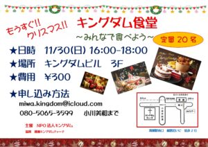 お知らせ2025年10月24日11/30 キングダム食堂 クリスマス