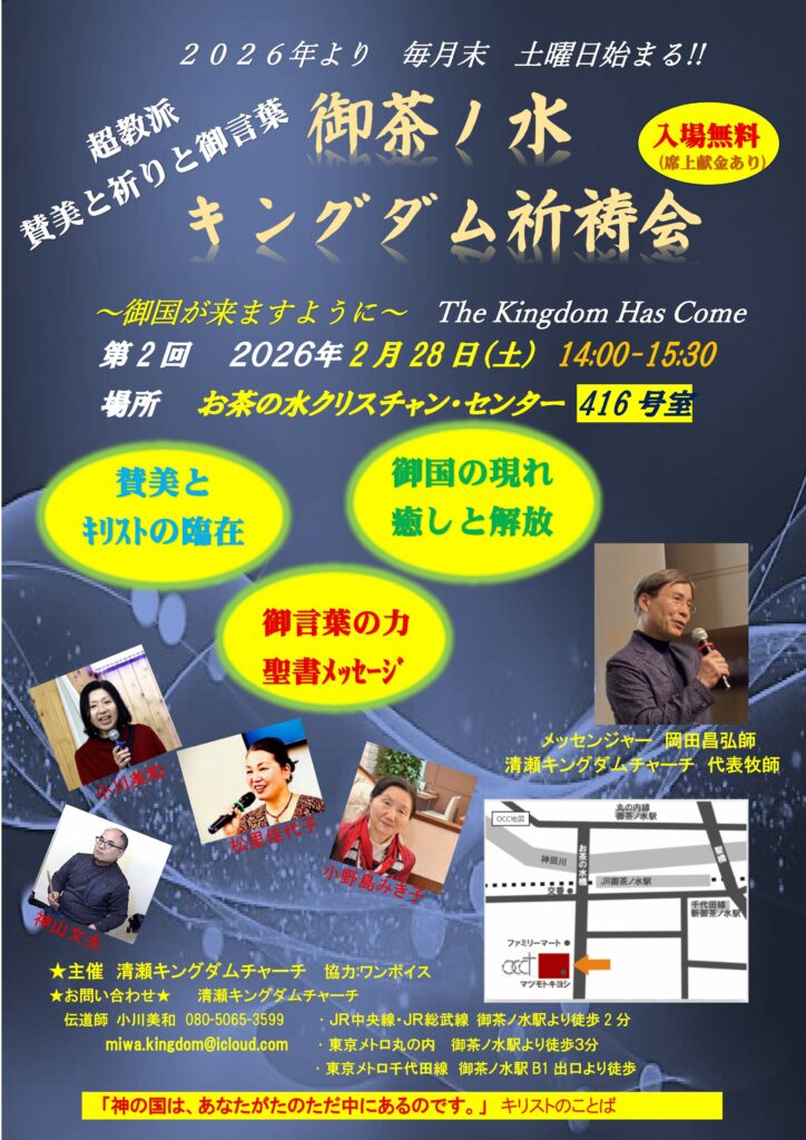 お知らせ2026年2月13日御茶ノ水 キングダム祈祷会