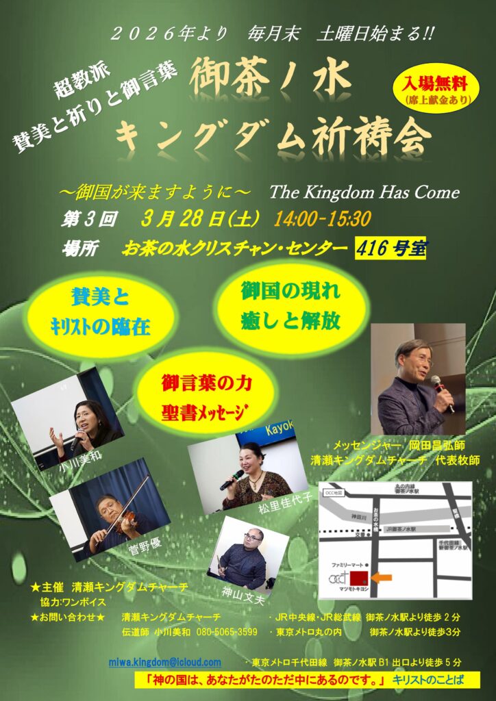 お知らせ2026年2月12日3/28土 第3回 御茶ノ水 キングダム祈祷会